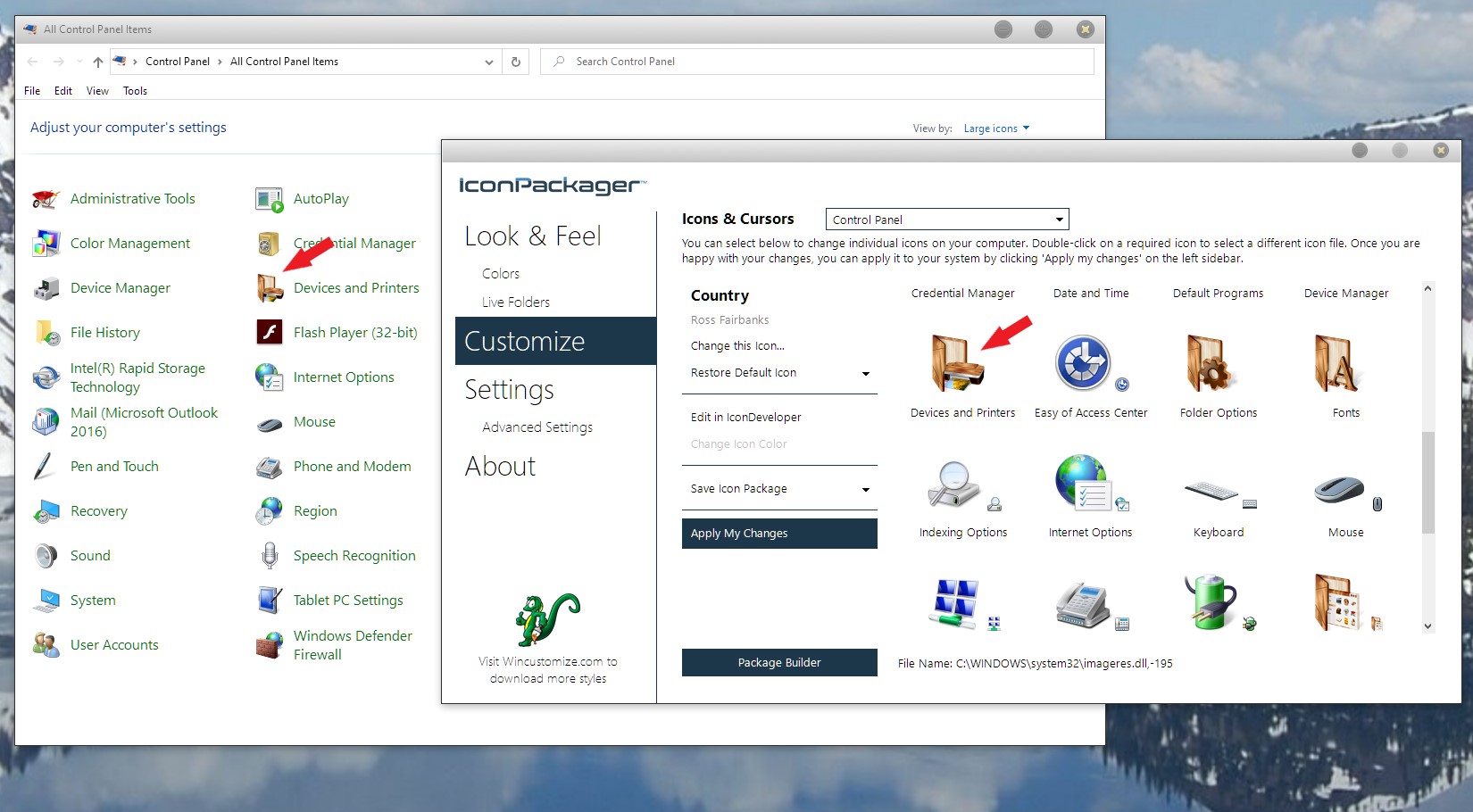 Thanks, Basj! Yes, I see the Control Panel drop-down option, but it only allows for changing that "Devices and Printers" Icon and not the icons which are inside or viewable by clicking Control Panel\All Control Panel Items\Devices and Printers.