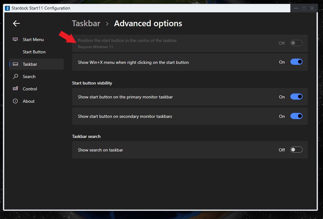 Hello,From what I see on the Start11 Configuration Windows in Windows 10, Start button on the center requires Windows 11.