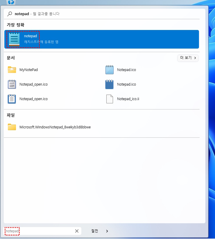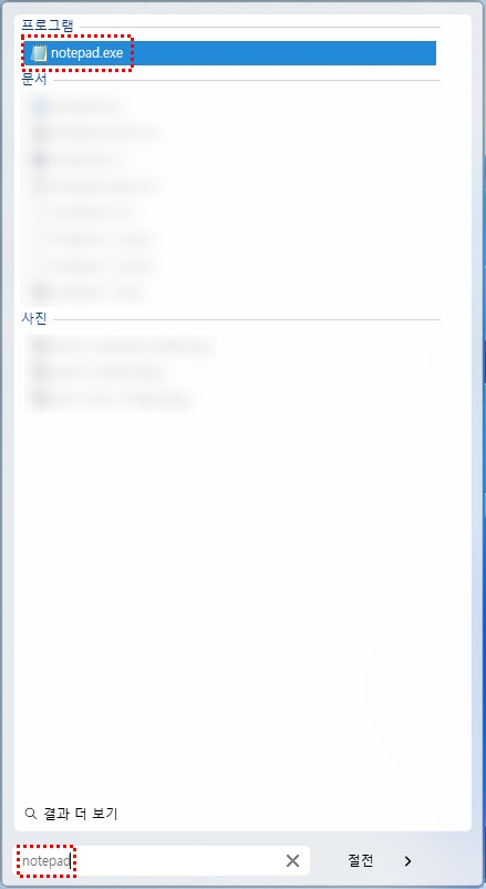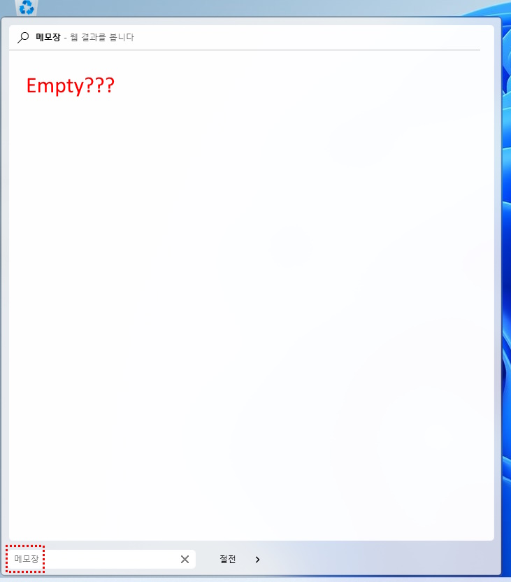 메모장(notepad) app registered in the start menu will not be searched if you type in Korean (메모장)