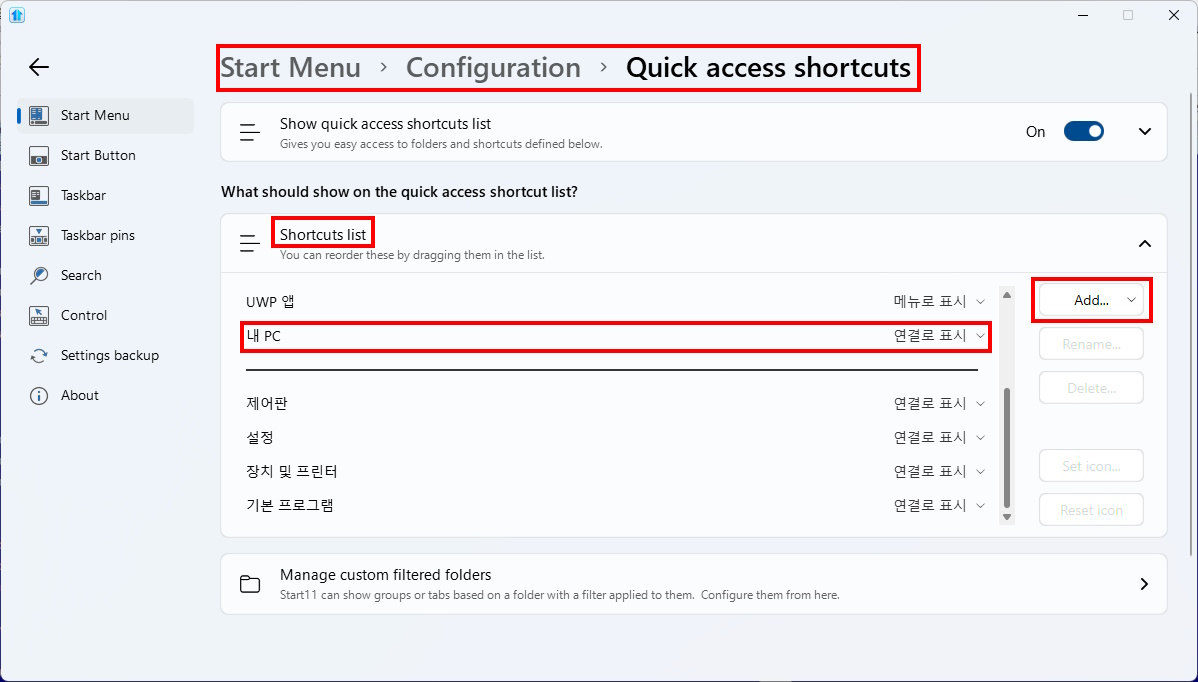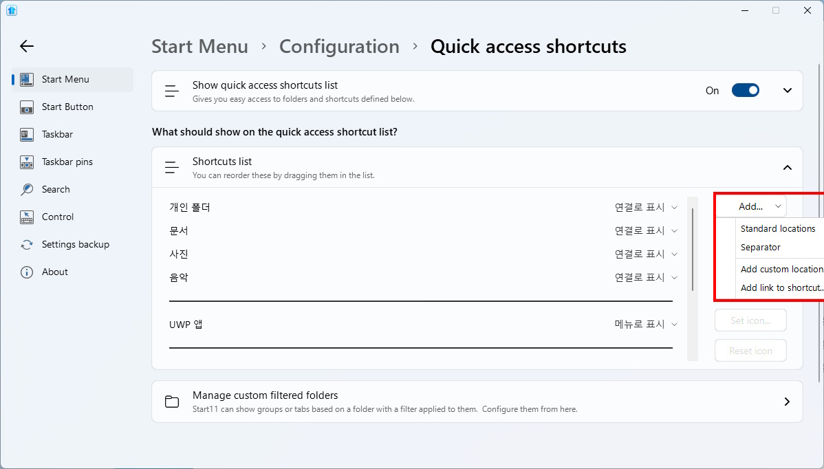 1) Select 'Configure Start11...' in the Start menu