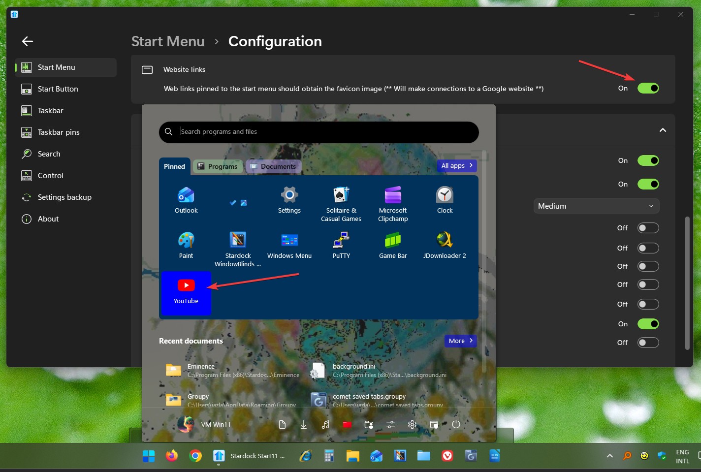 2. Start11: Neu: Website anpinnen (Strg+v Weblink)