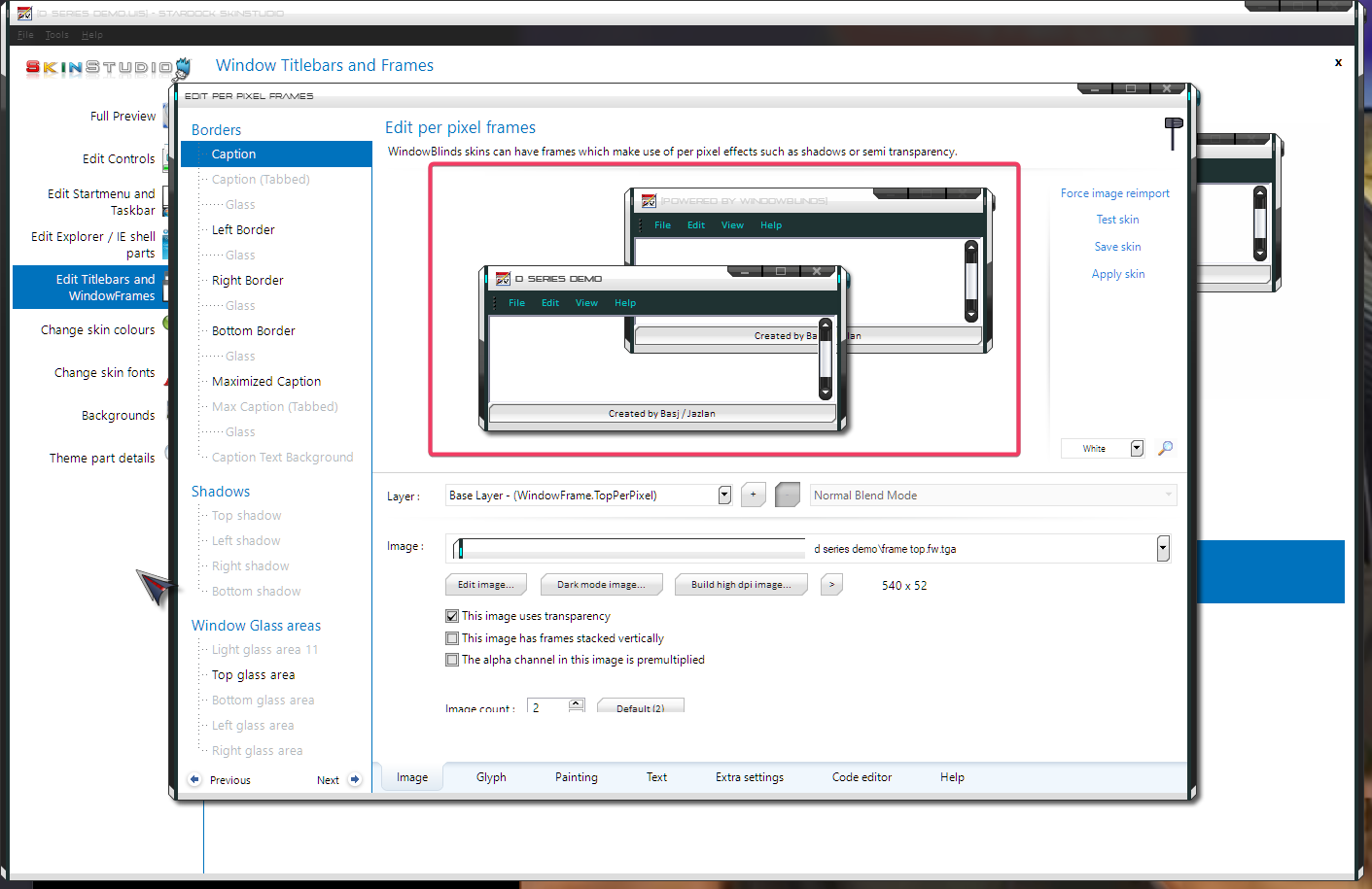 - The preview should change as you work, for example. If you working on the Windows frame, the preview should change as you edit the skin. Don't need to apply to see its effect. Something like my screenshot below.