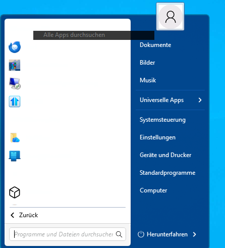With the Windows 11 style, another error occurs in this context. When you exit the app search, the app search field remains visible. Similar to the Windows 7 and Modern styles.
