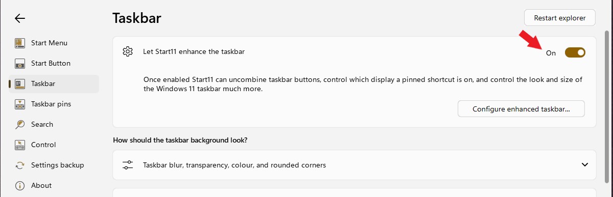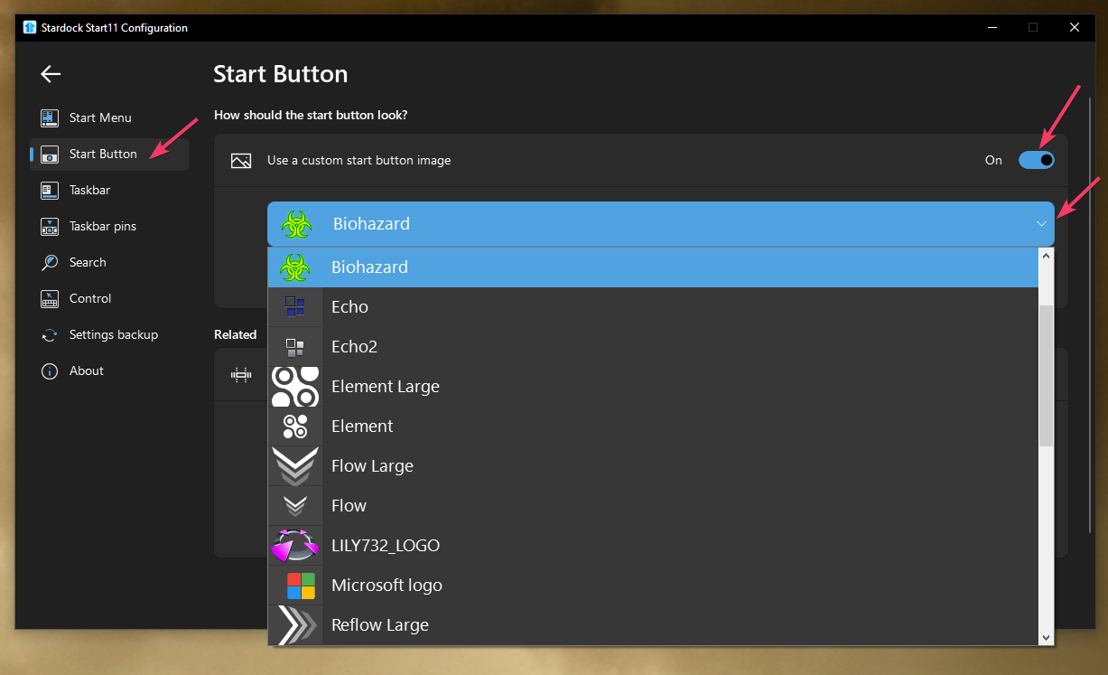 Also, do know that you can only use a custom Start button if aligned left without enabling the Enhanced taskbar.