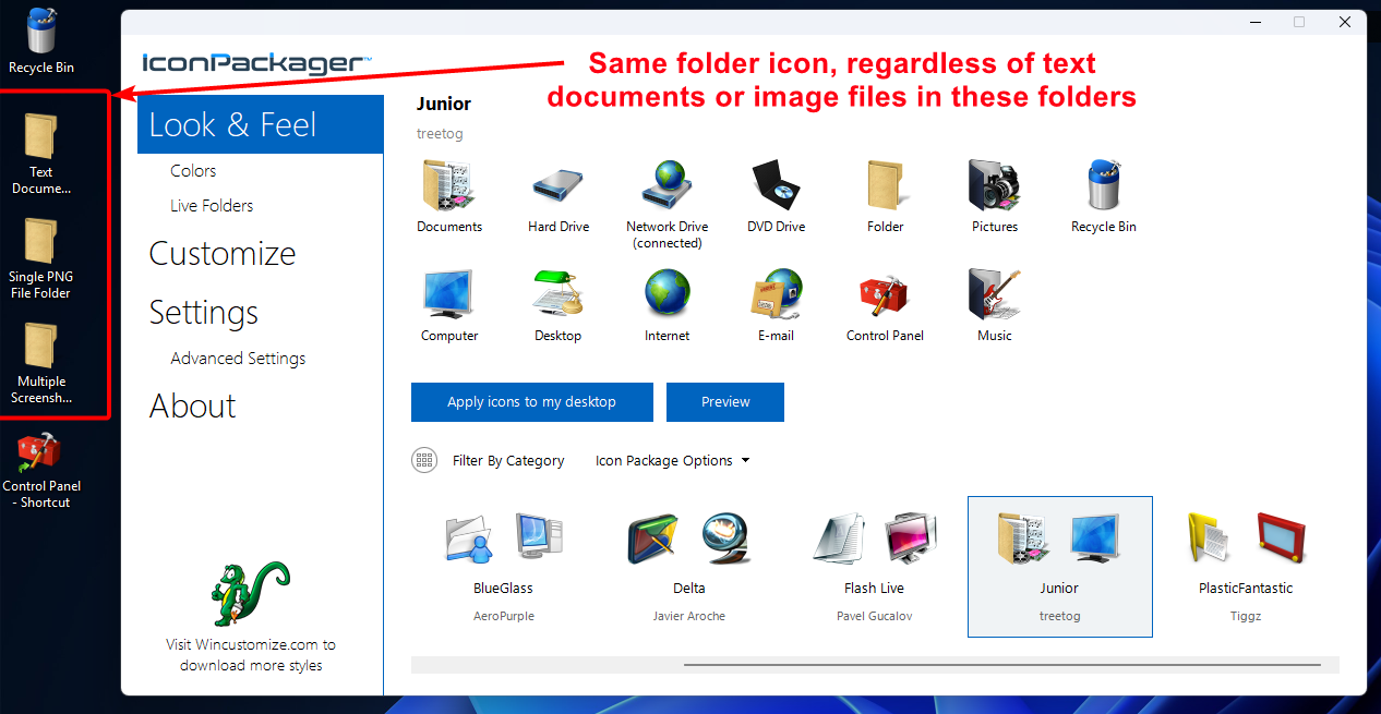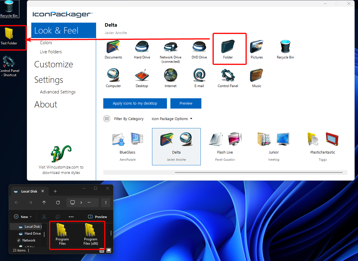 You can see in my next image, that when I "Apply icons to my desktop," the PlasticFantastic Folder icon remains as intended, despite the fact that I applied the "Delta" package: